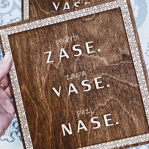 Lesena tablica z imenom dojenčka ali dojenčice.
