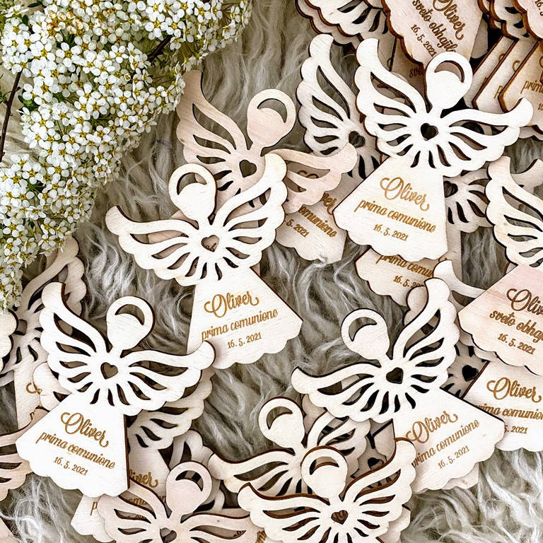 Leseni spominski angelčki z možnostjo dodanega magneta +0,45€.